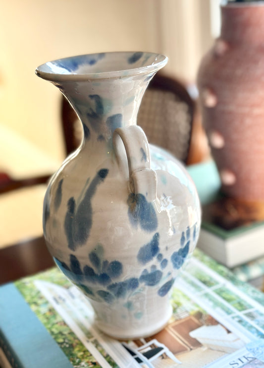 Handthrown White and Blue Baluster Vase