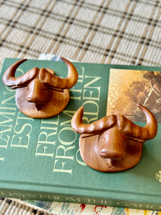 Hand-carved Wooden Longhorn Hooks (Set of 2)