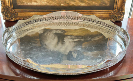 Large Oval Silverplate Gallery Tray with Scalloped Edge