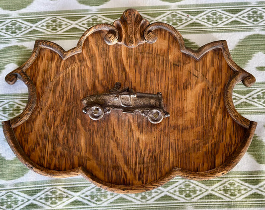 Wooden Wall Hanging with Cast Iron Vintage Car