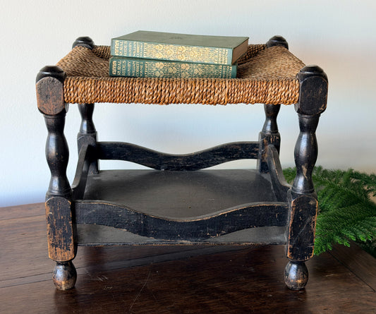 Antique English Rush Seat Stool with Painted Base