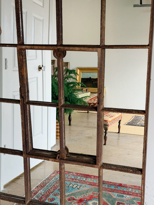 Victorian Cast Iron Windowpane Mirror