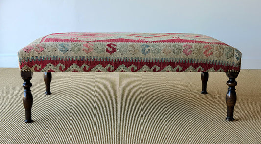 Antique Kilim Footstool (Green/Burgundy)