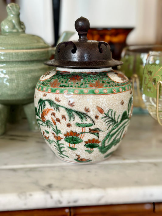 Crackle Glaze Porcelain Ginger Jar with Lid