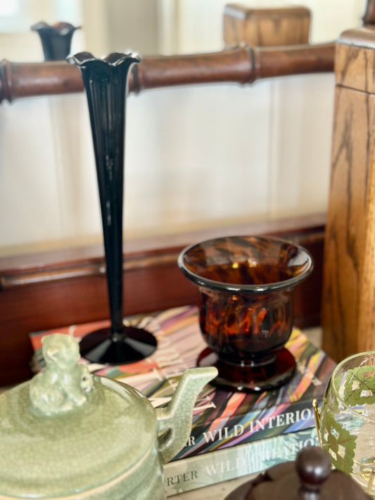 Sold OutBlack Glass Scalloped Edge Stem Vase