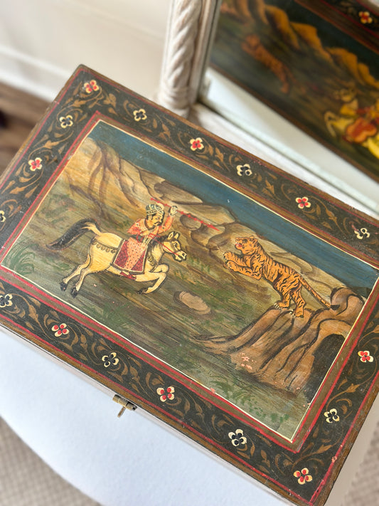 Mughal Style Hunting Scenes Painted Box