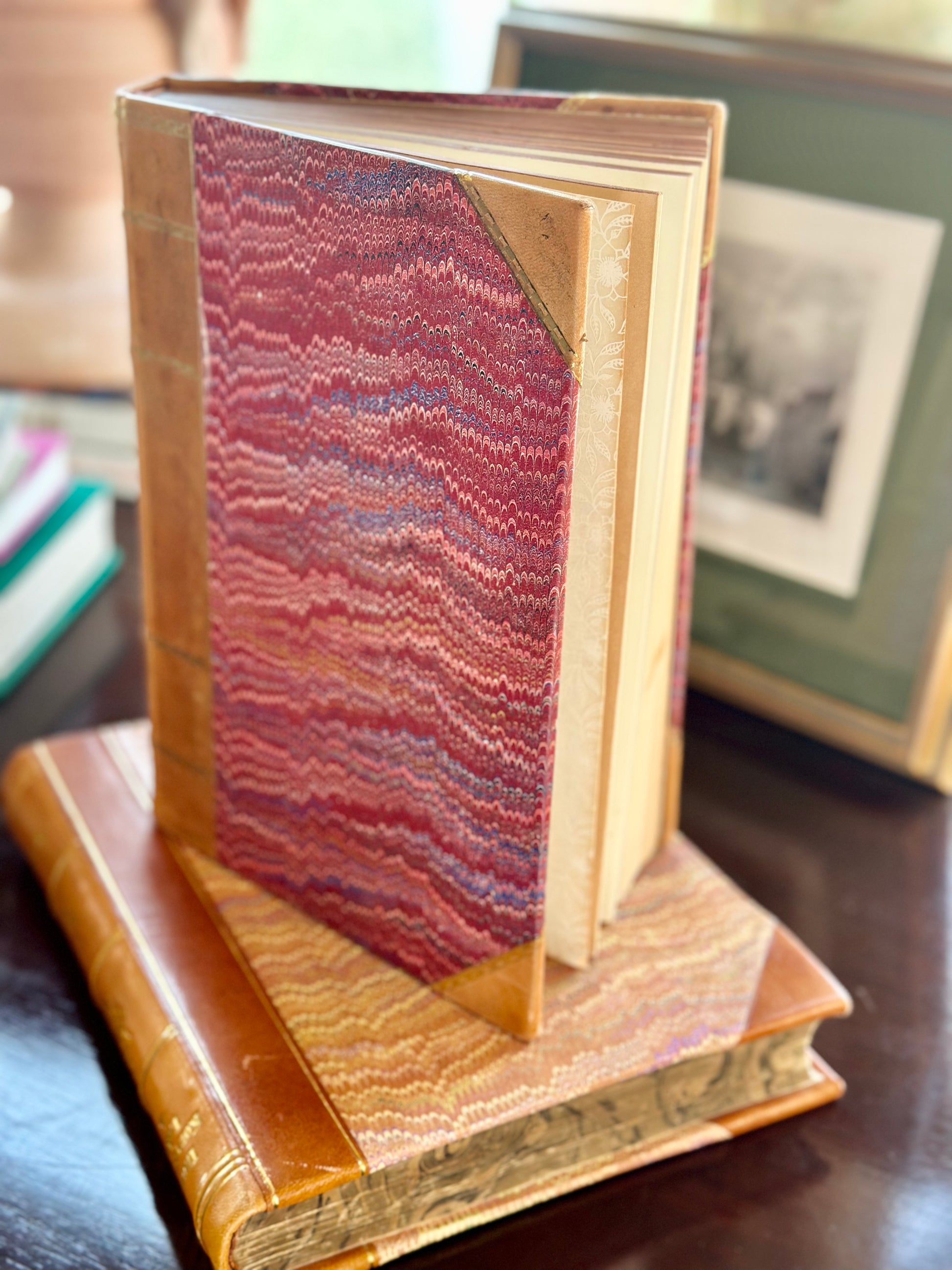 Antique and Vintage Scandinavian Leather Bound Books (Set of 2)