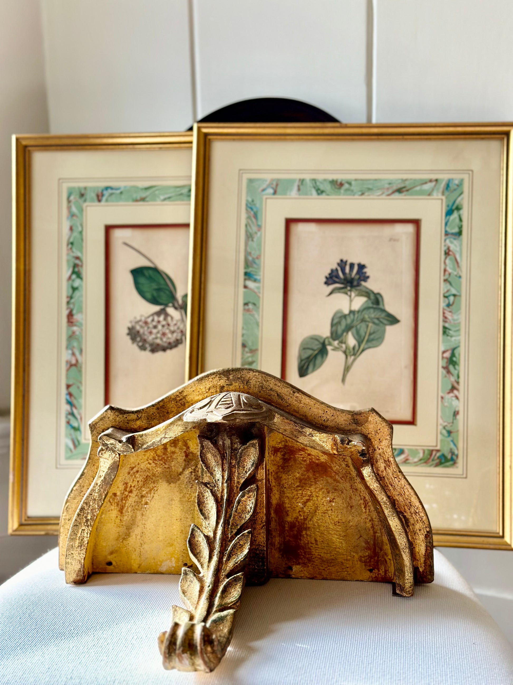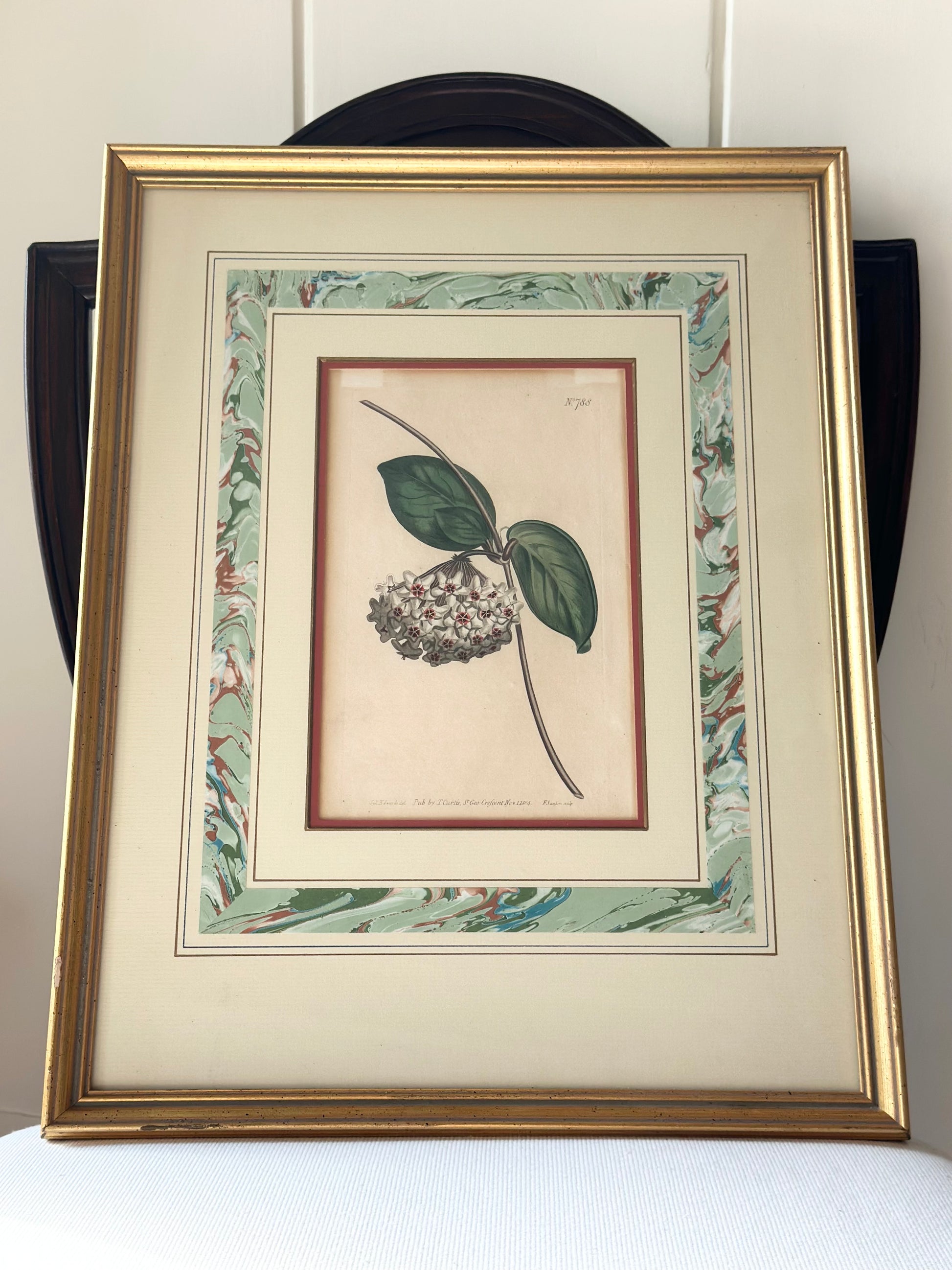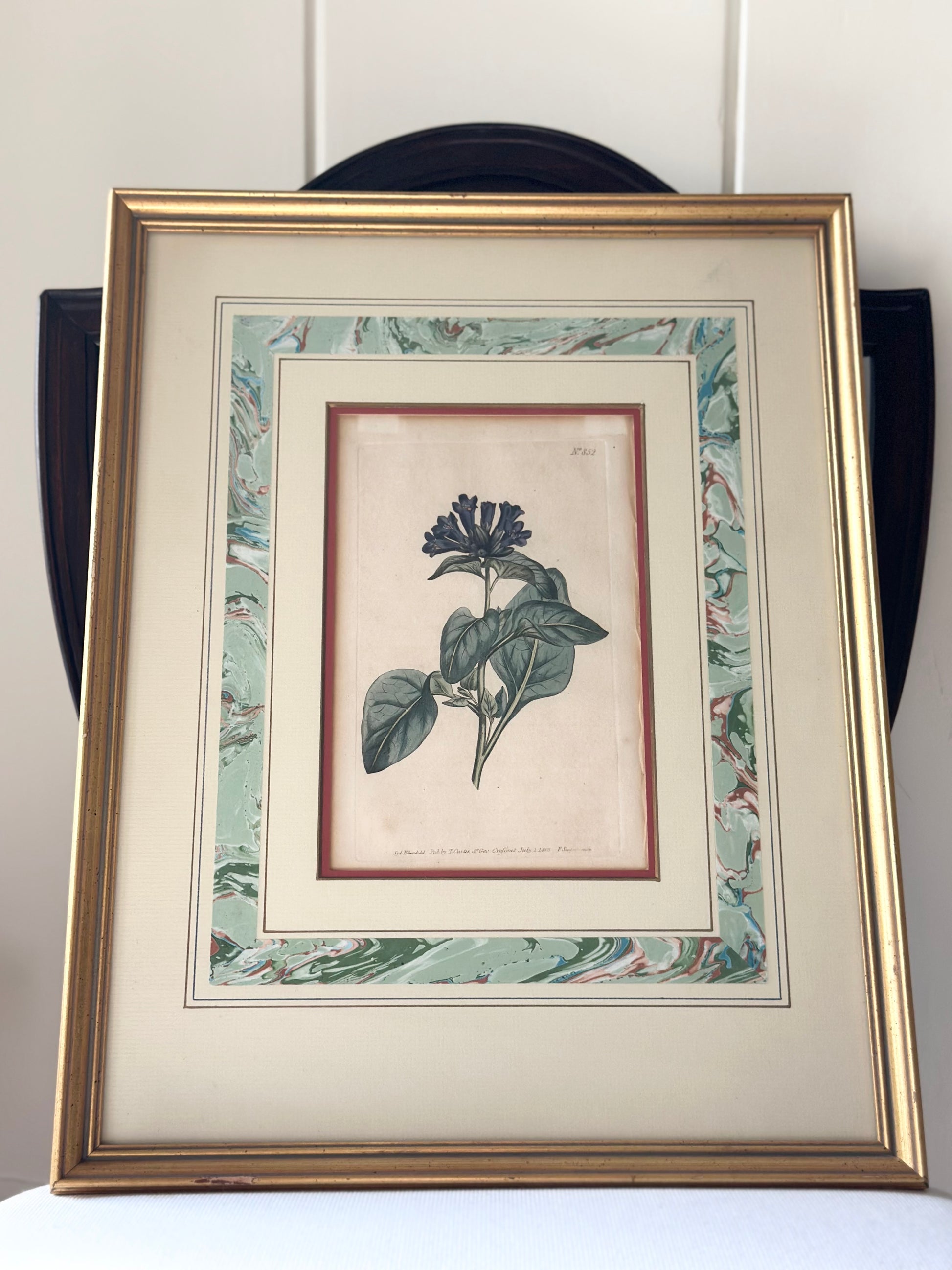 Antique Botanical Hand-Colored Framed Prints (Set of 2)