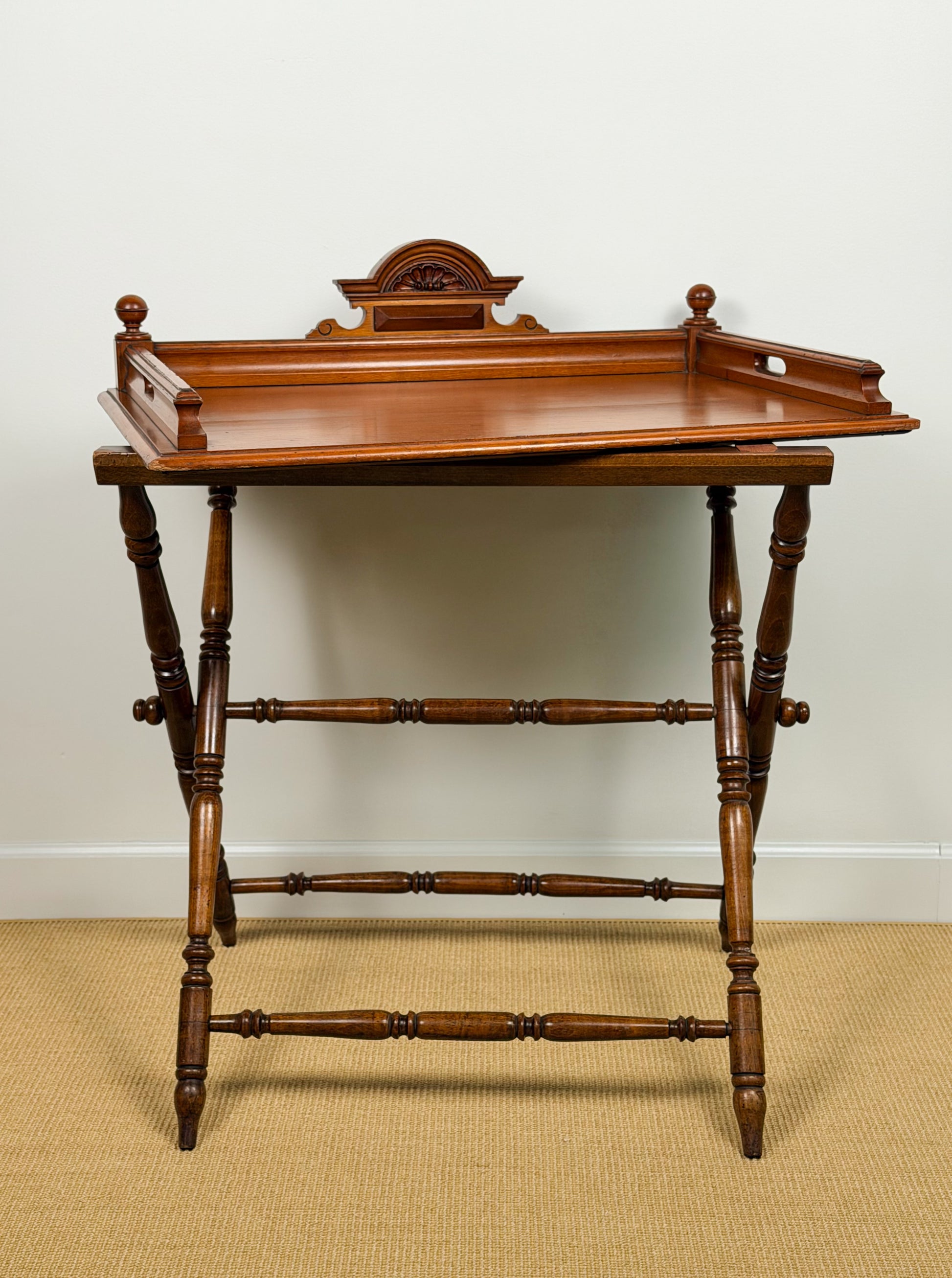 Circa 1880. Solid oak gallery tray top with folding oak base.