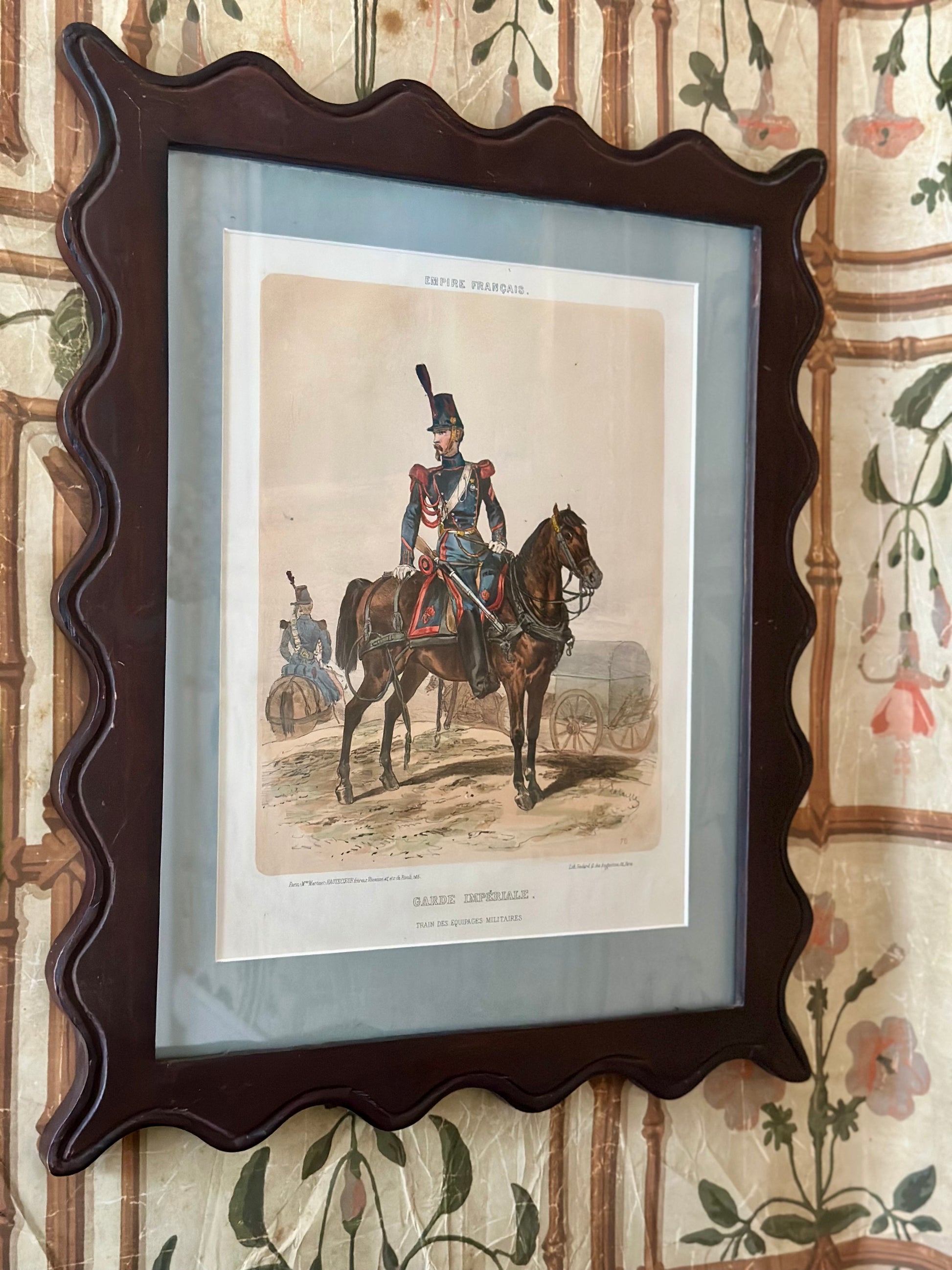 Antique French Empire Military Uniform Hand-Colored Lithographs (Set of 2)