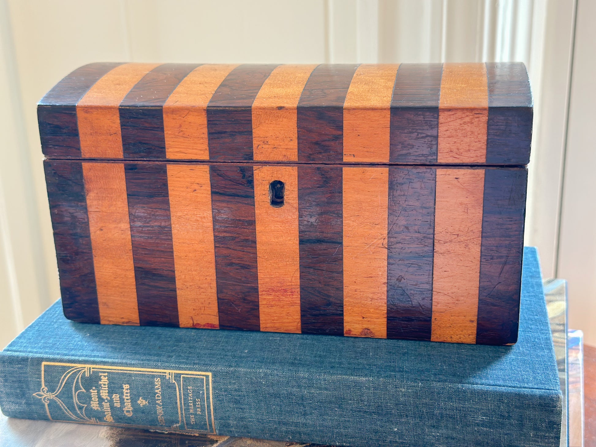 Antique Striped Wooden Tea Caddy