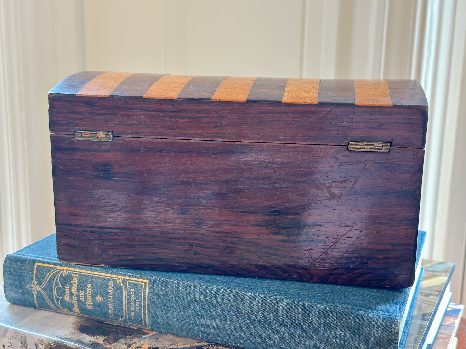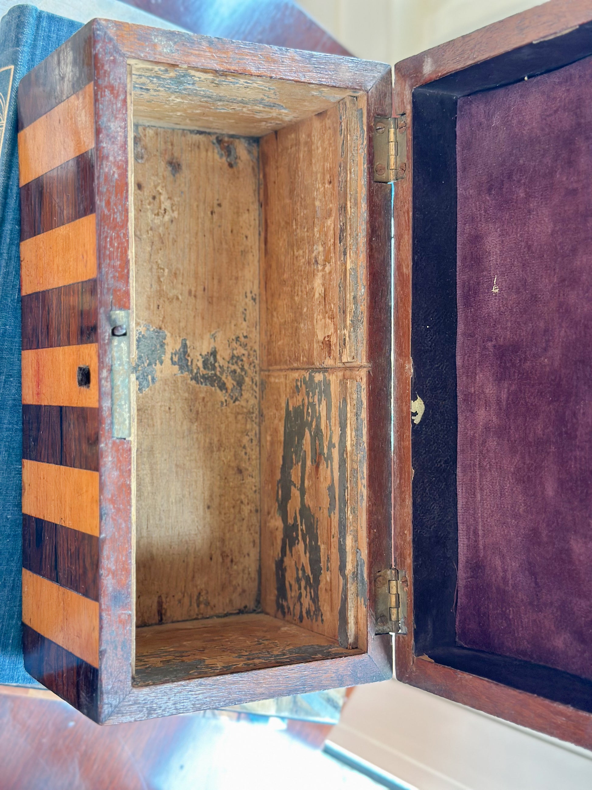 I went to England for boxes and England delivered! This is one of several from my trip and the others are coming over in the container. I believe this box was used as a tea caddy and would have had two boxes inside to store different types of tea separately.