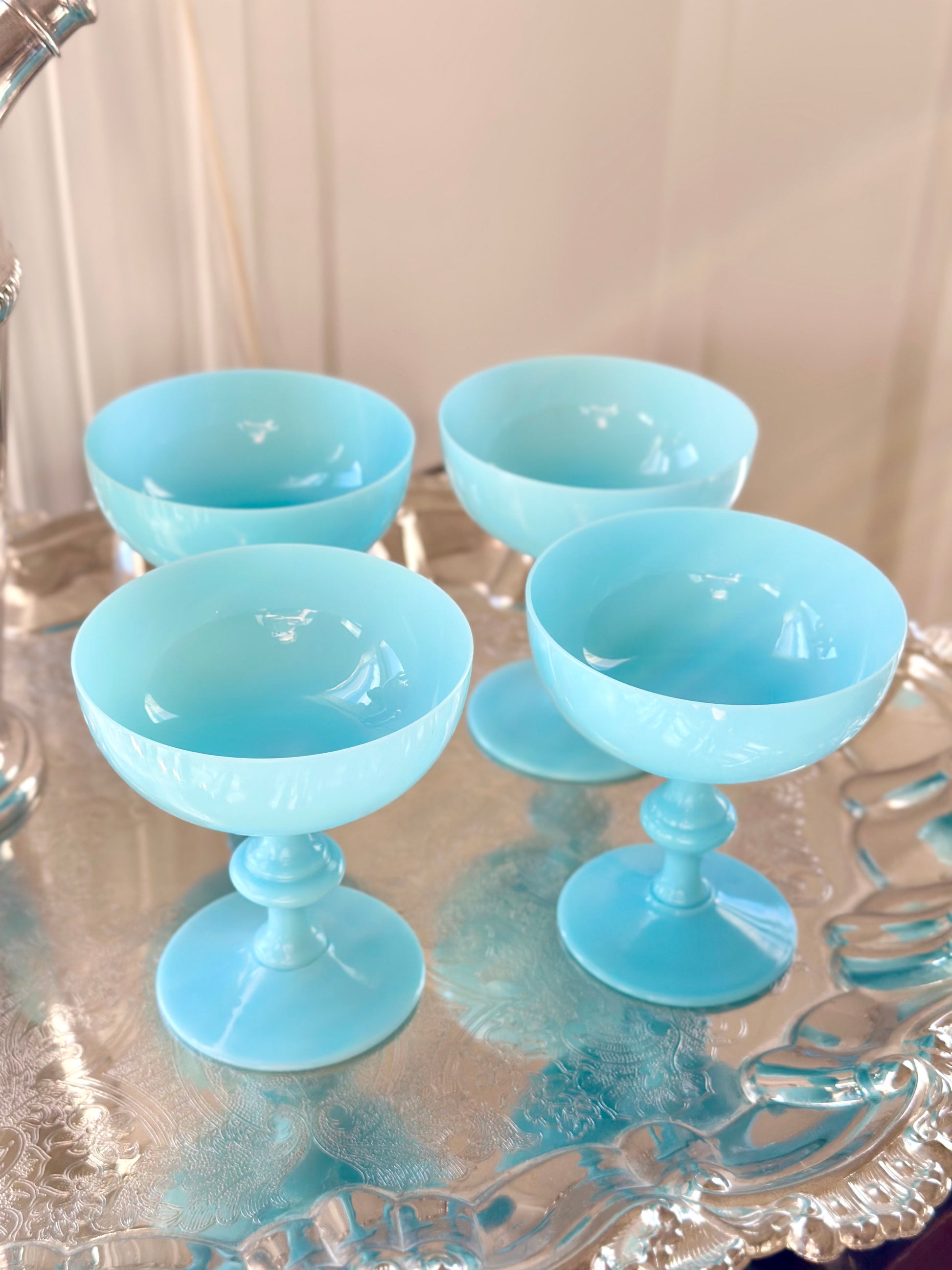 Blue Opaline Coupe Glasses (Set of 4)