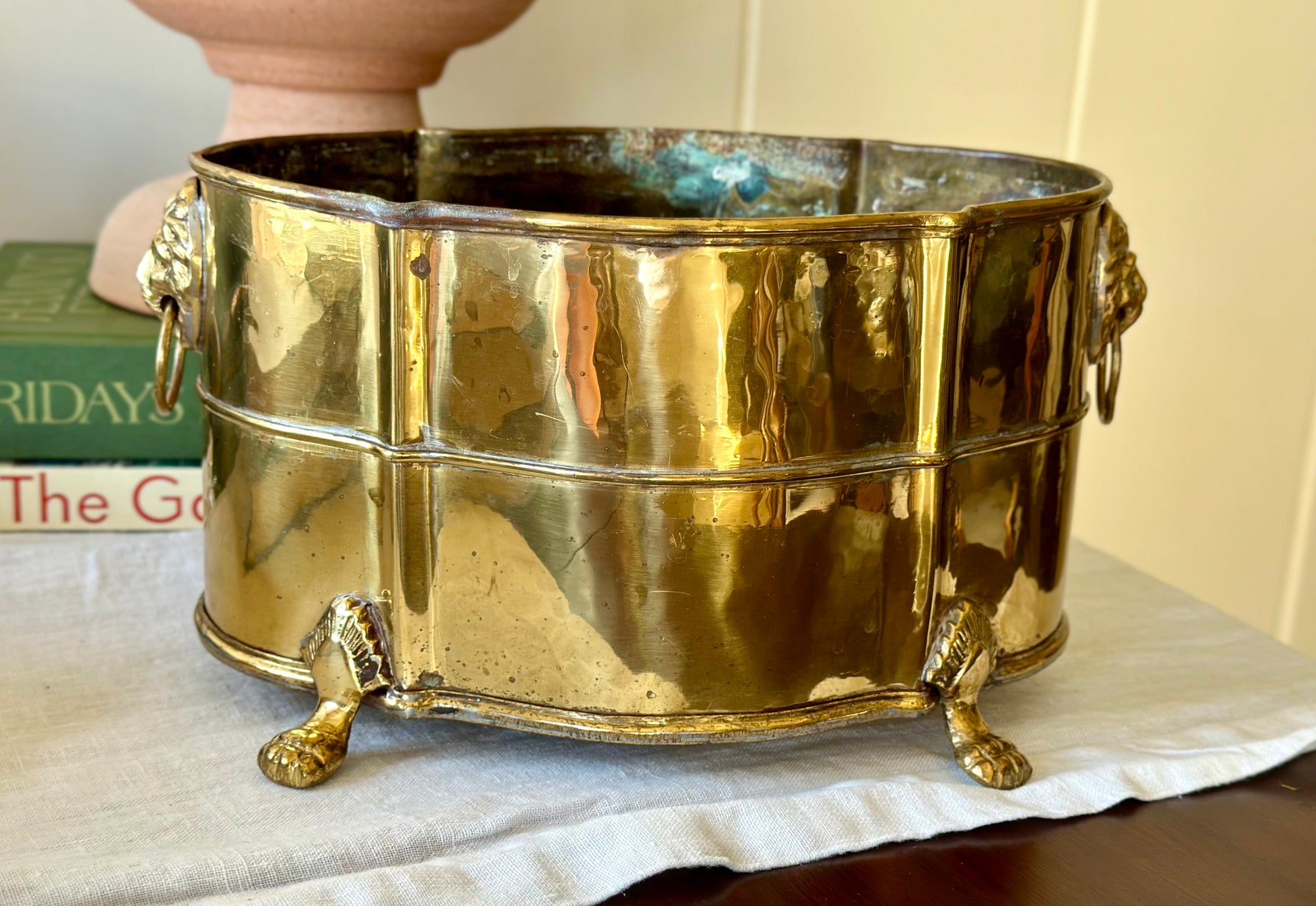 Brass Footed Lion Head Jardinière