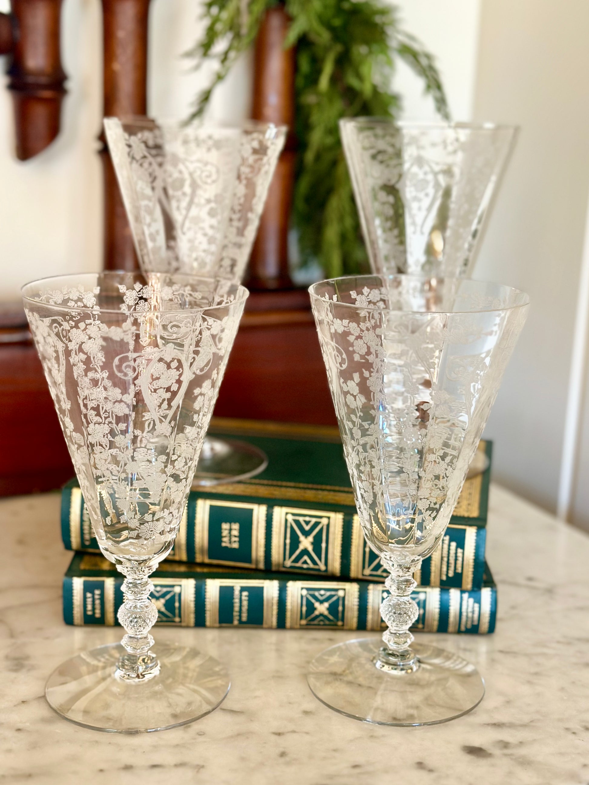Cambridge ‘Diane’ Etched Crystal Iced Tea Glasses (Set of 4)
