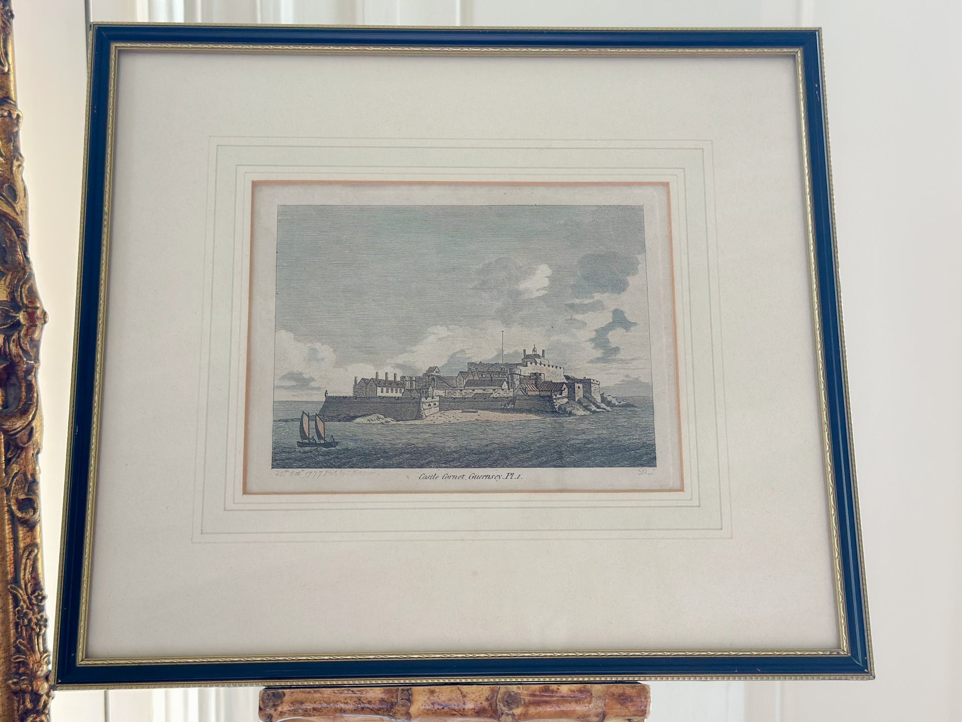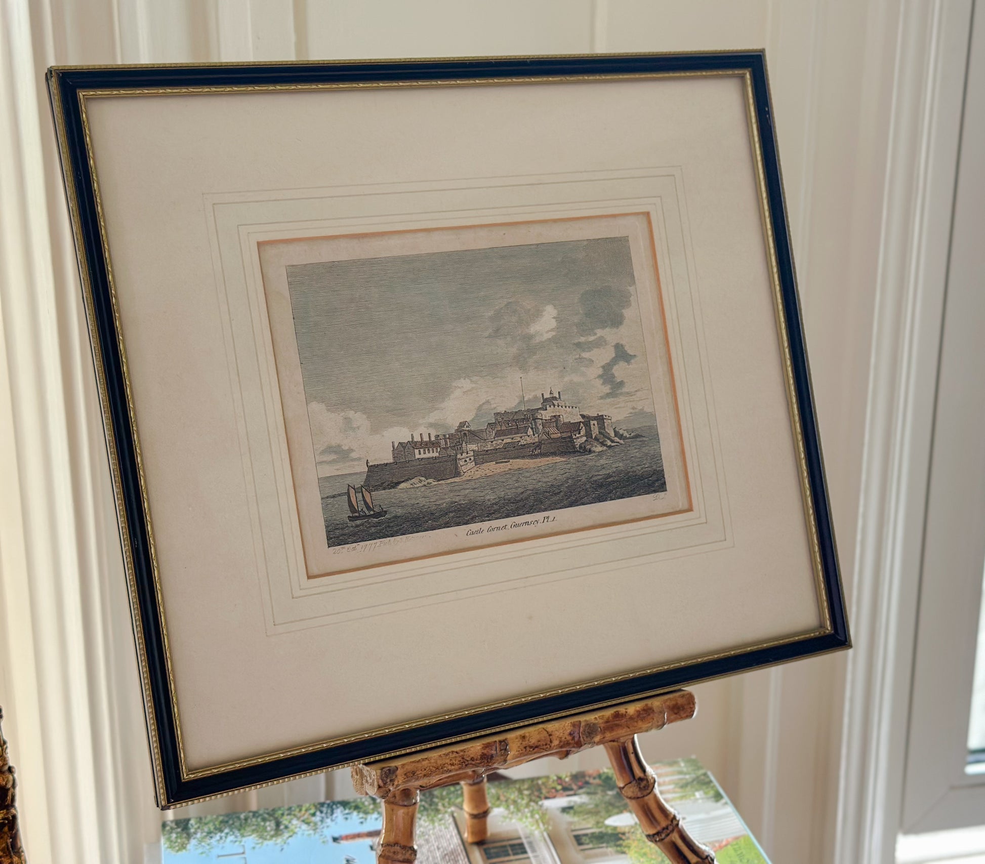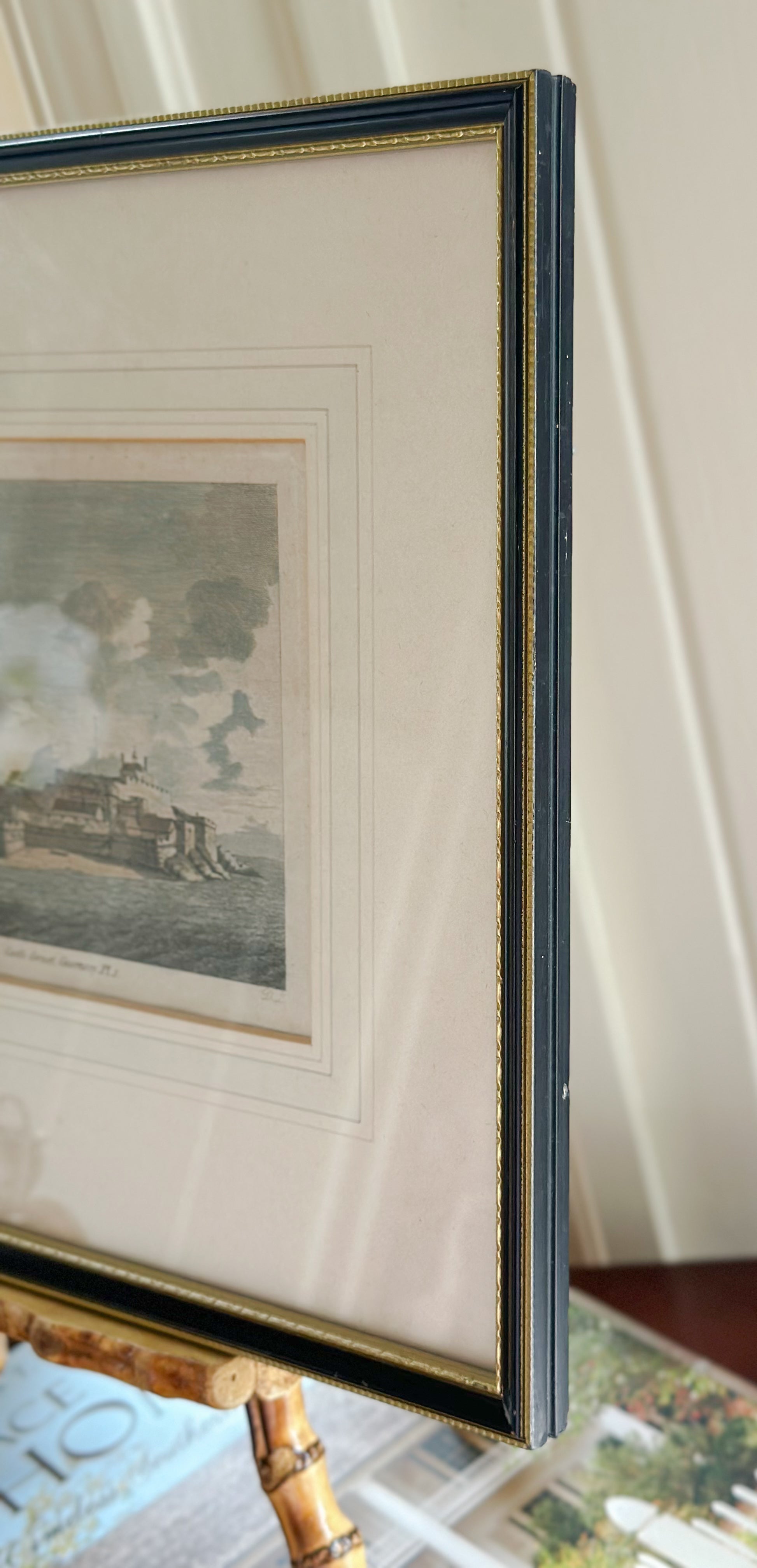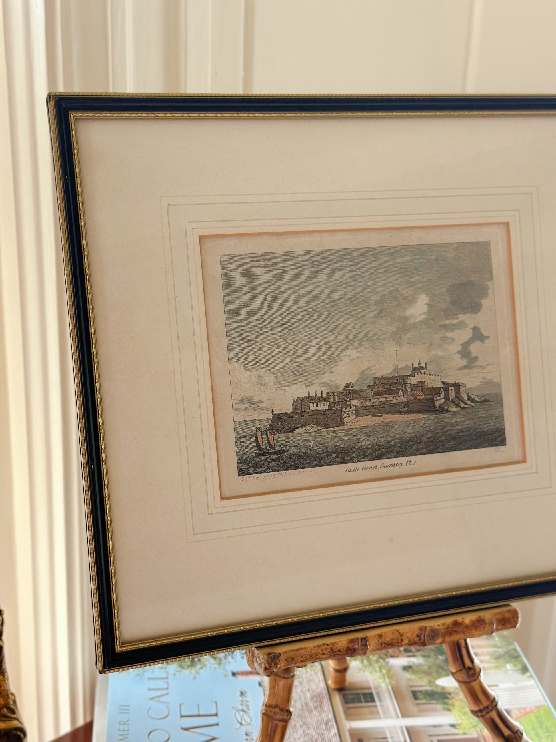 Castle Cornet, Guernsey Framed Antique Hand-Colored Engraving