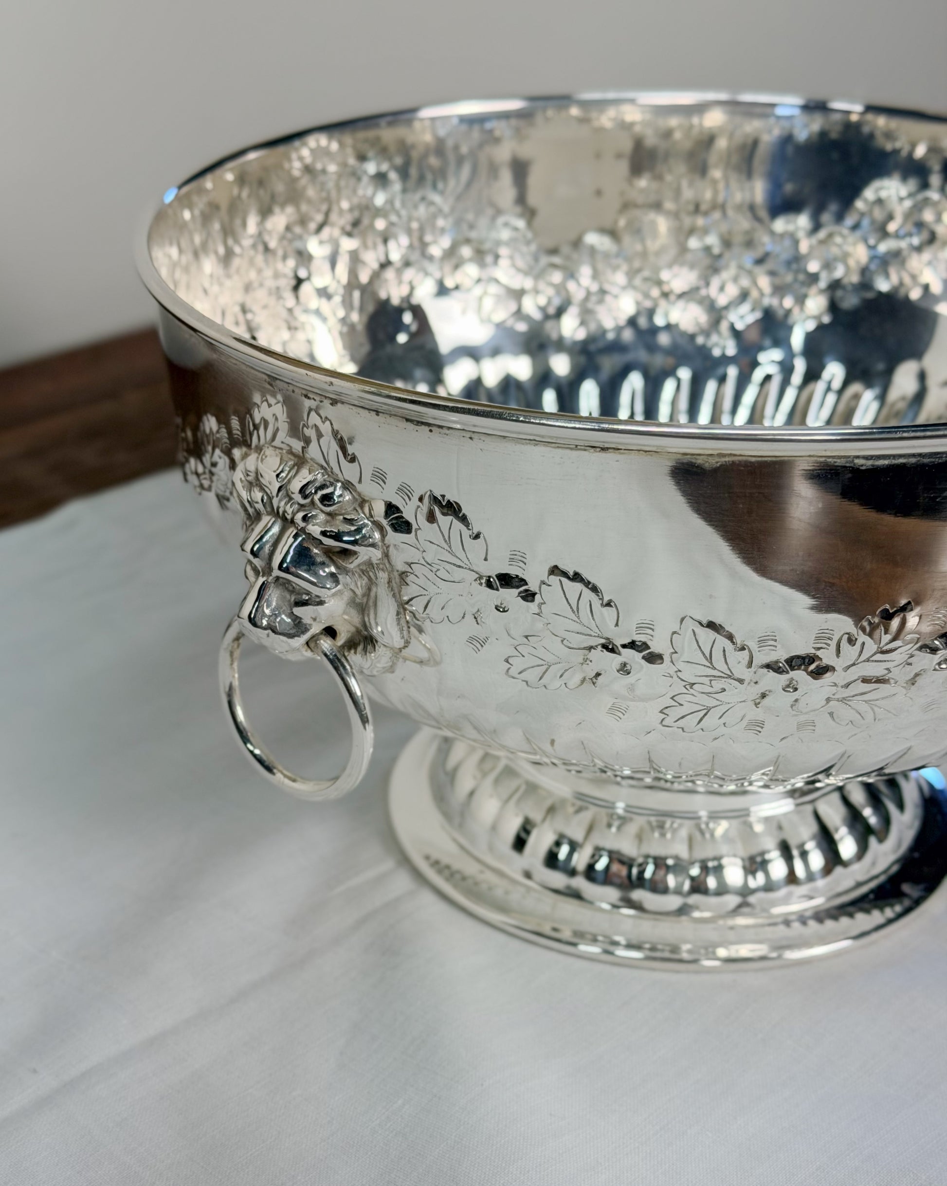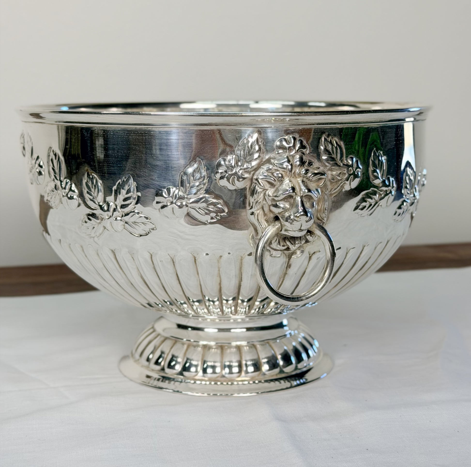 English Silverplate Pedestal Bowl with Lion’s Head Rings