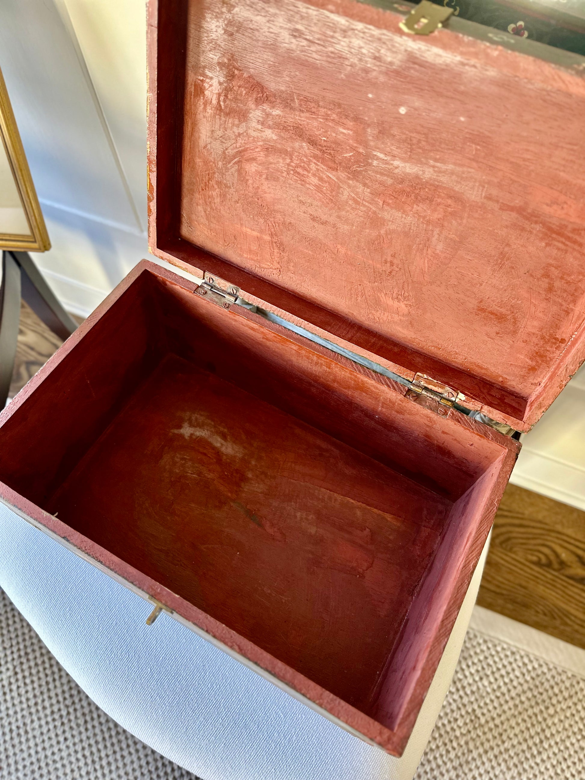 I suspect this piece is pretty old but don’t have the expertise to make an official guess as to its age. There are signs of age and imperfections to the surface of the box but of the variety that add character to the piece (in my opinion!).
