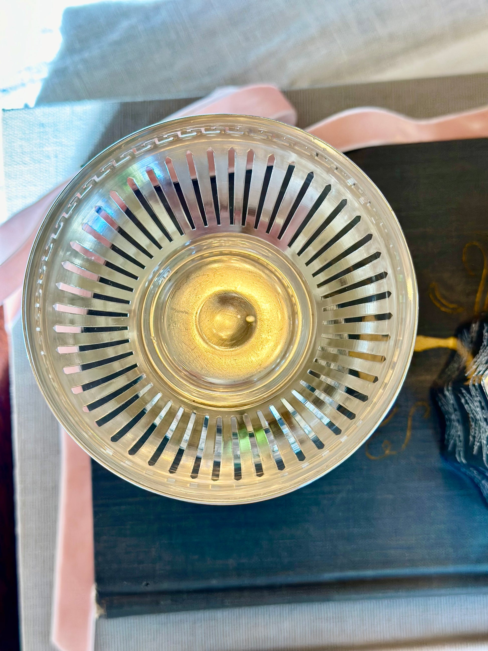 Silverplate Pedestal Compote with Reticulated Greek Key Rim