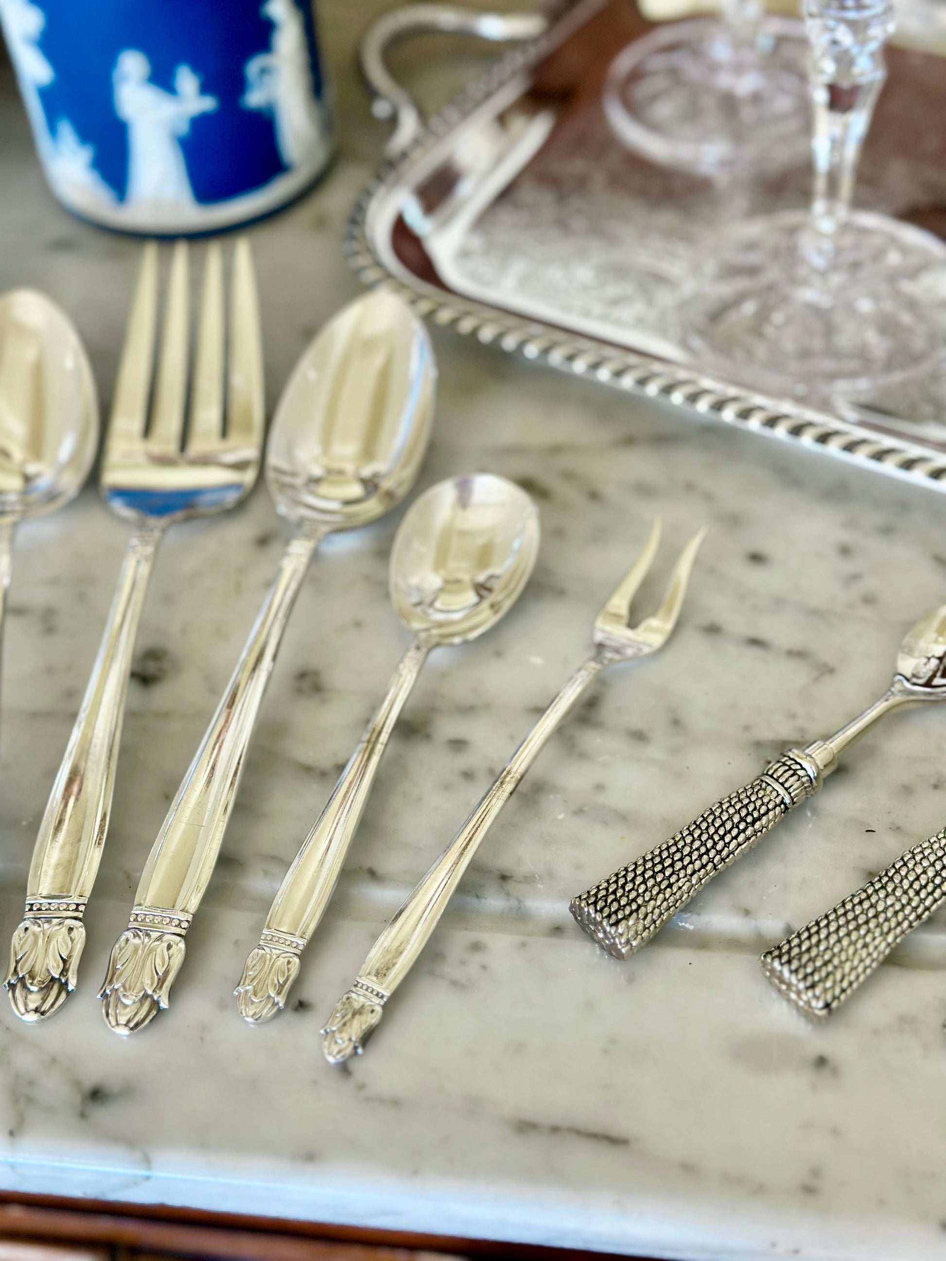 I see so many sets of silver serving utensils and the detail on the handles caught my eye on this one. Each piece is in excellent condition. What a great holiday or hostess gift this would be to a newly engaged or married couple.