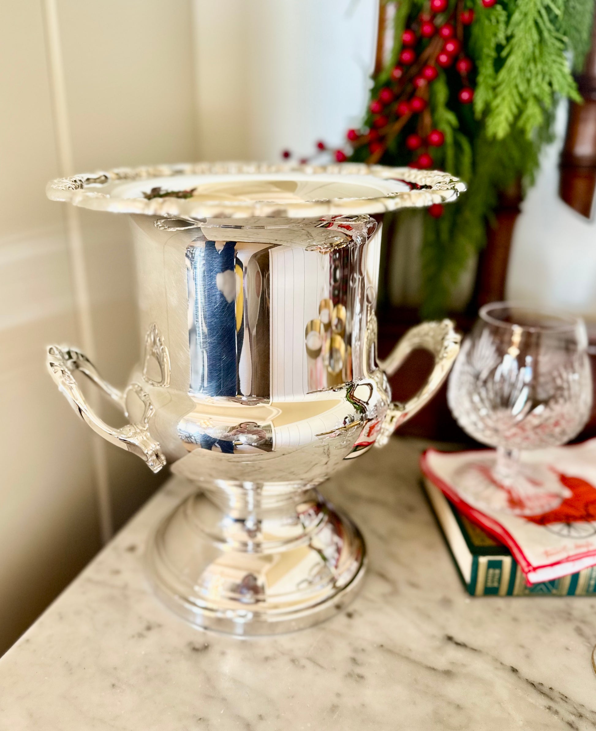 This champagne bucket by Gorham has a beautiful embossed scroll detailing around the rim and she’s good and stout too. If you don’t plan to use her to chill your bubbles, think of all the beautiful Christmas plants you could display in her!