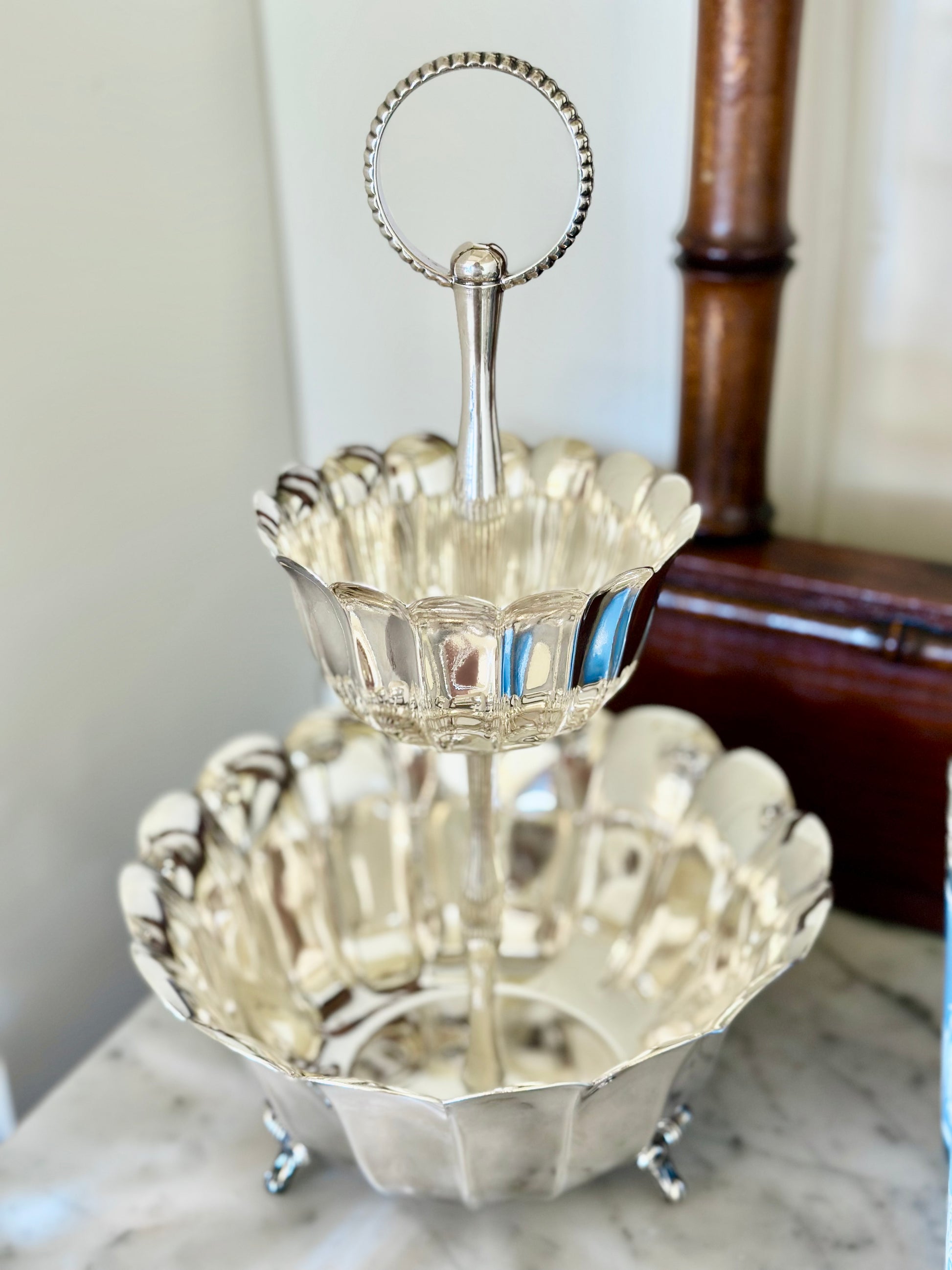 The vintage two tiered stands in this style will typically have a bit of a wobble and this one does have that. It is perfectly useable in its current condition and I would use it as is on my table!