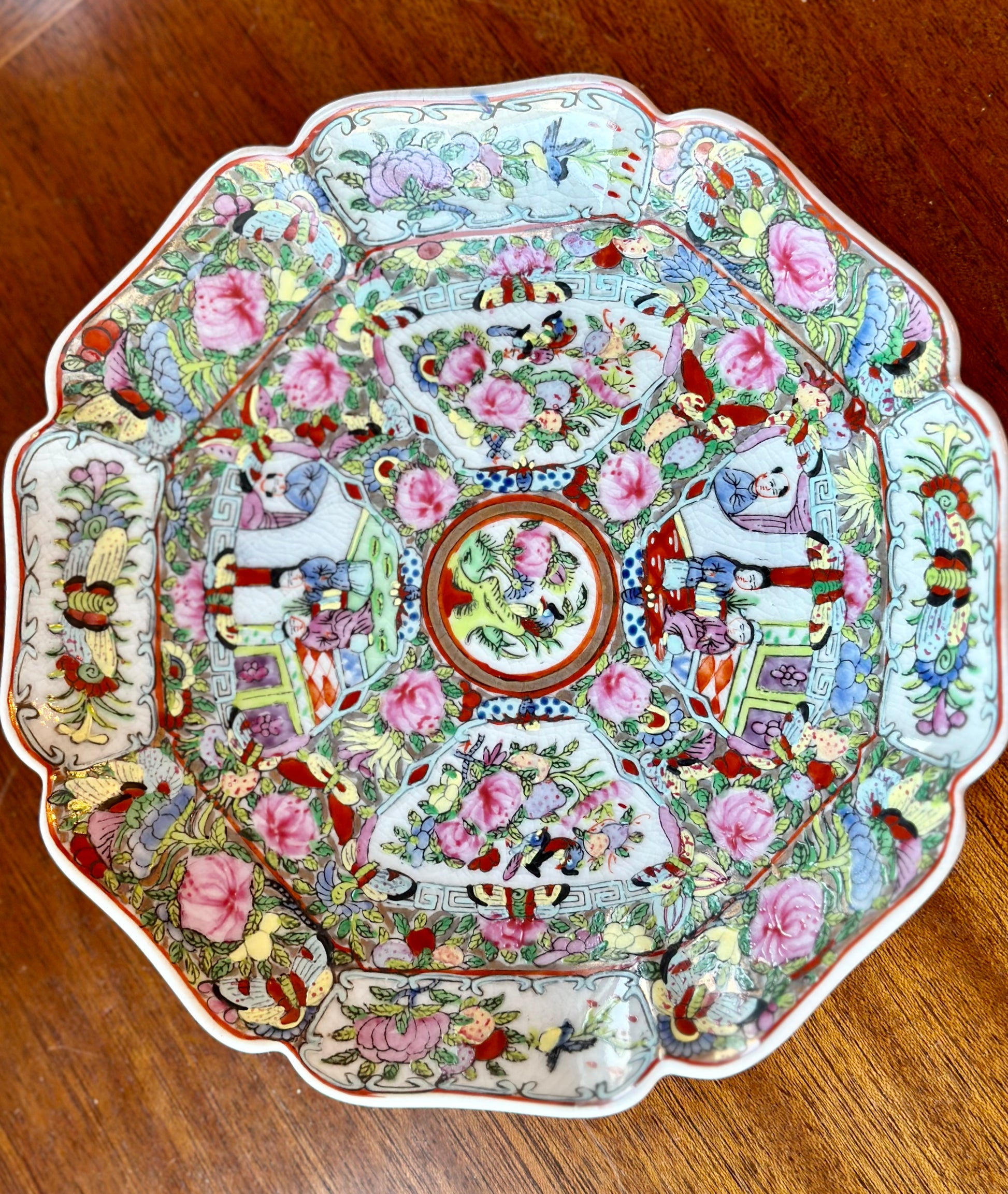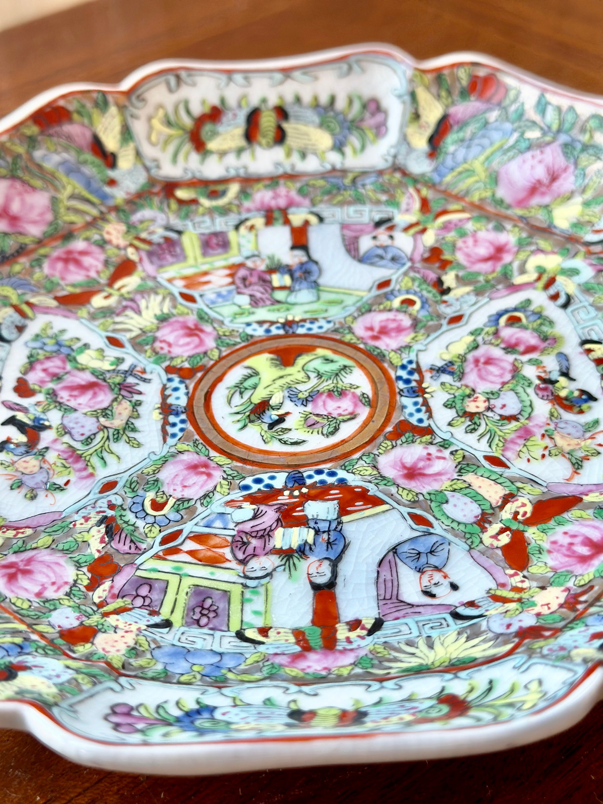 Famille Rose Medallion Scalloped Edge Plate