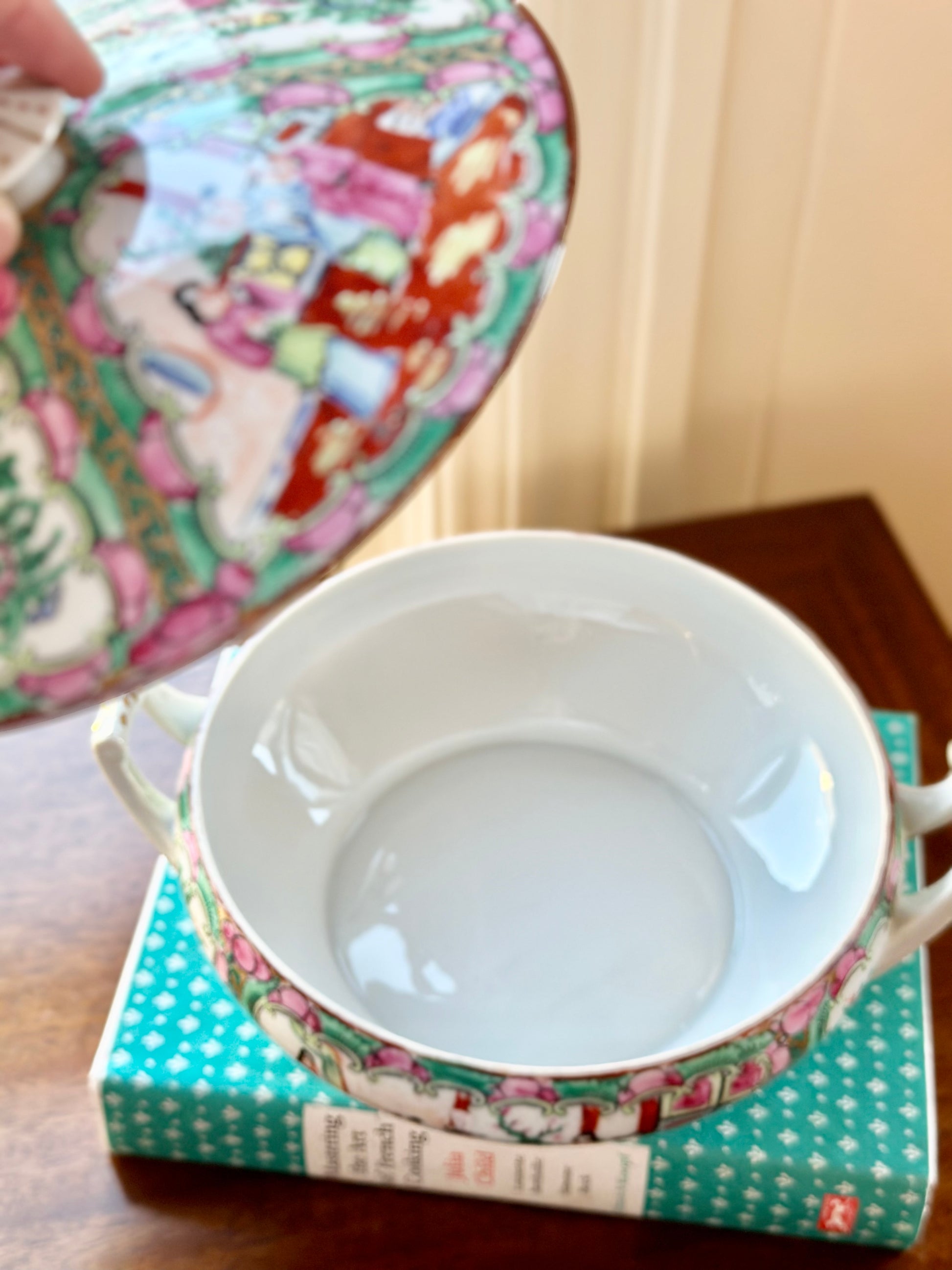 I love this little tureen! Like I always do with tureens I am swooning at the idea of this one with an orchid arrangement, but also with that fabulous lid she would look equally as beautiful sitting pretty on a sideboard or really anywhere else in your house.