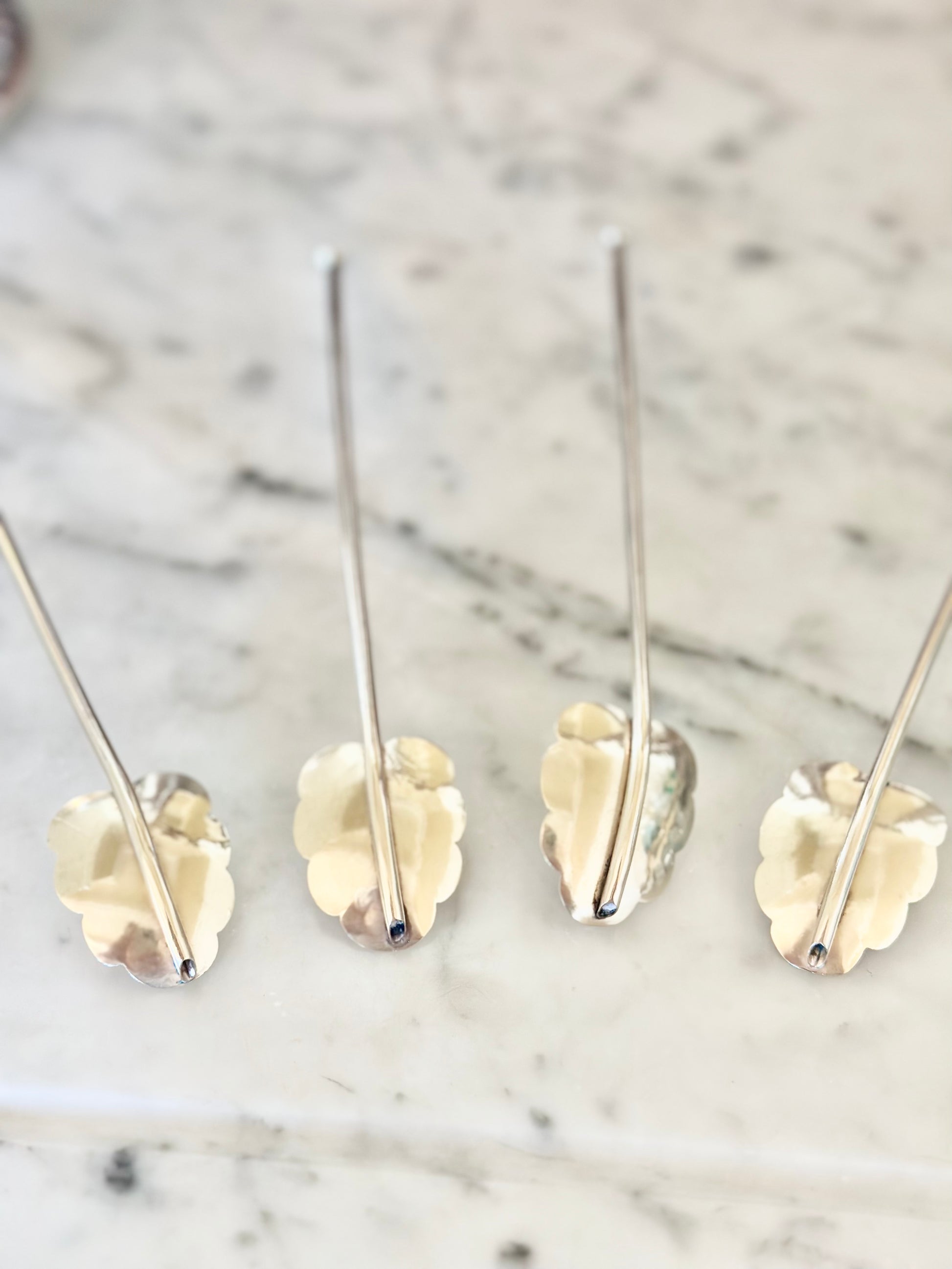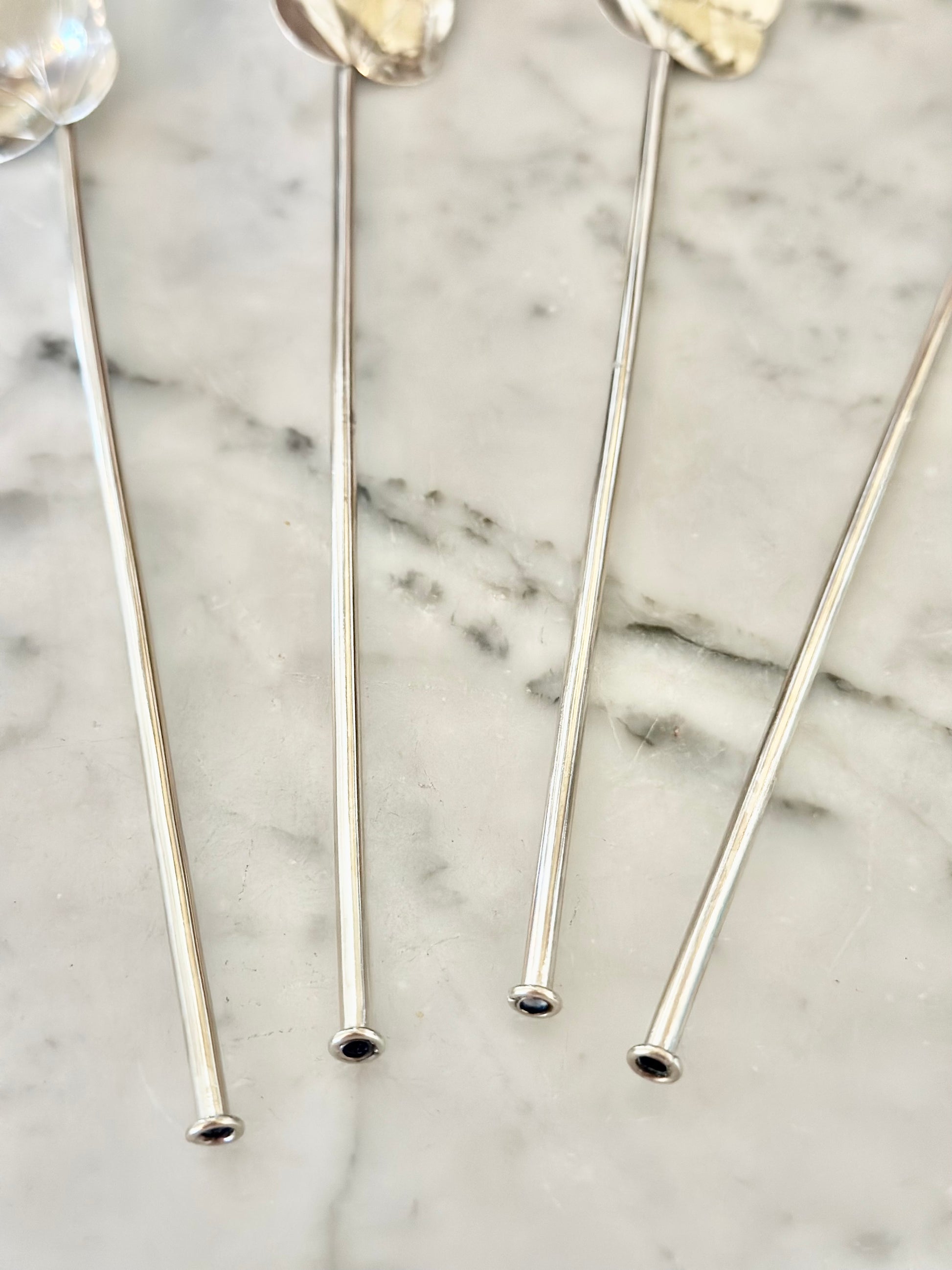 Sterling Silver Leaf Cocktail Stirrers (Set of 4)