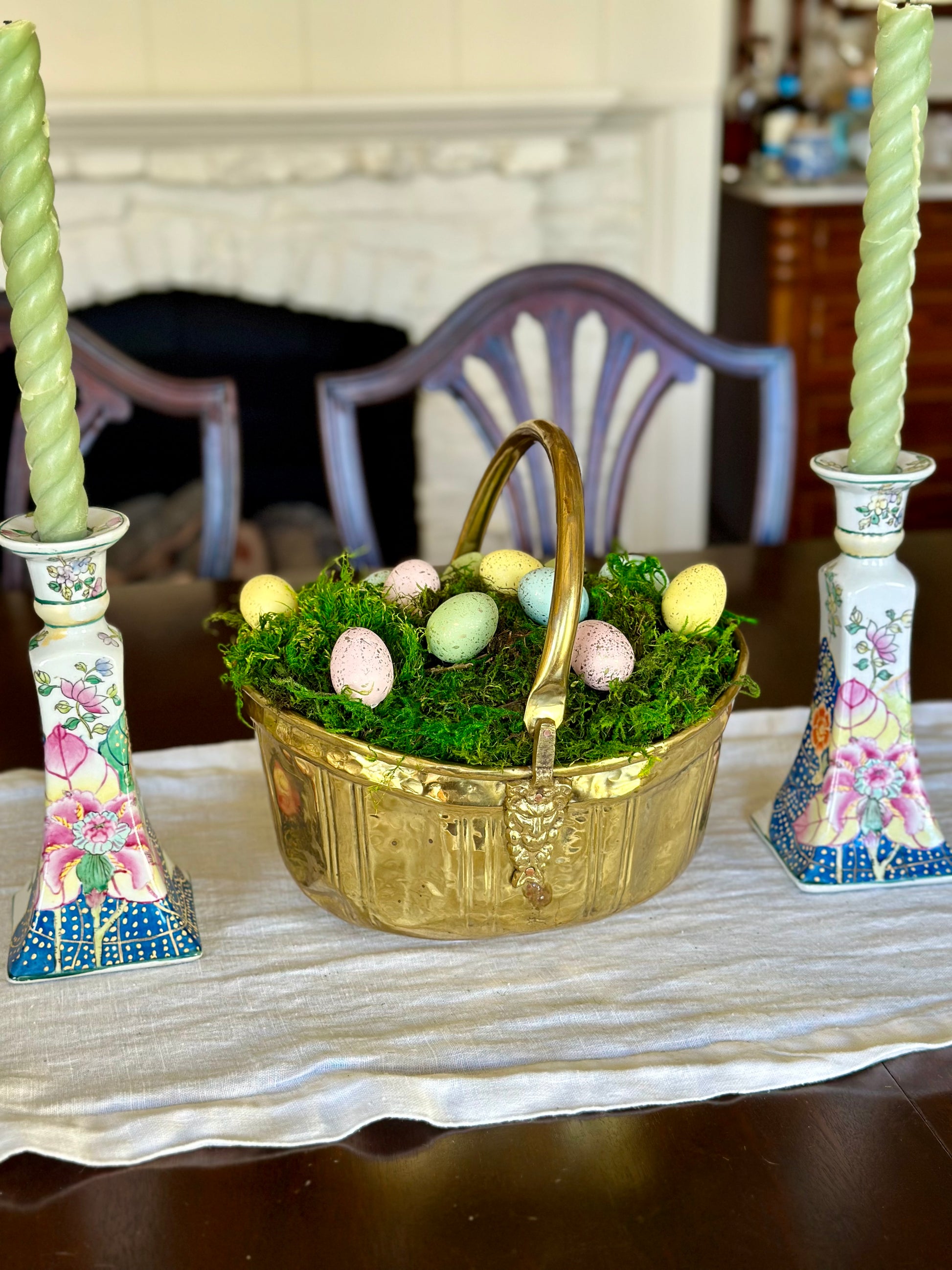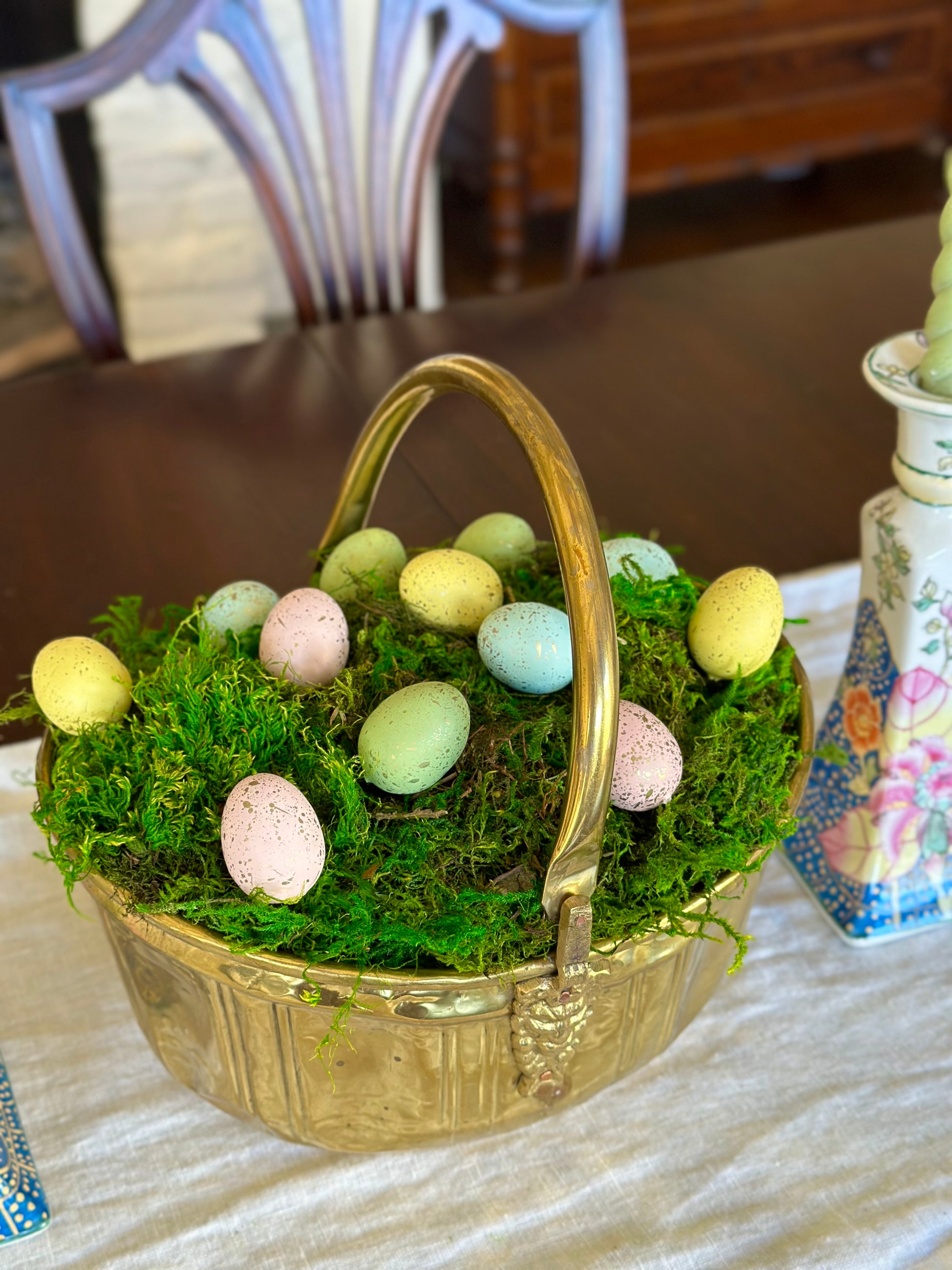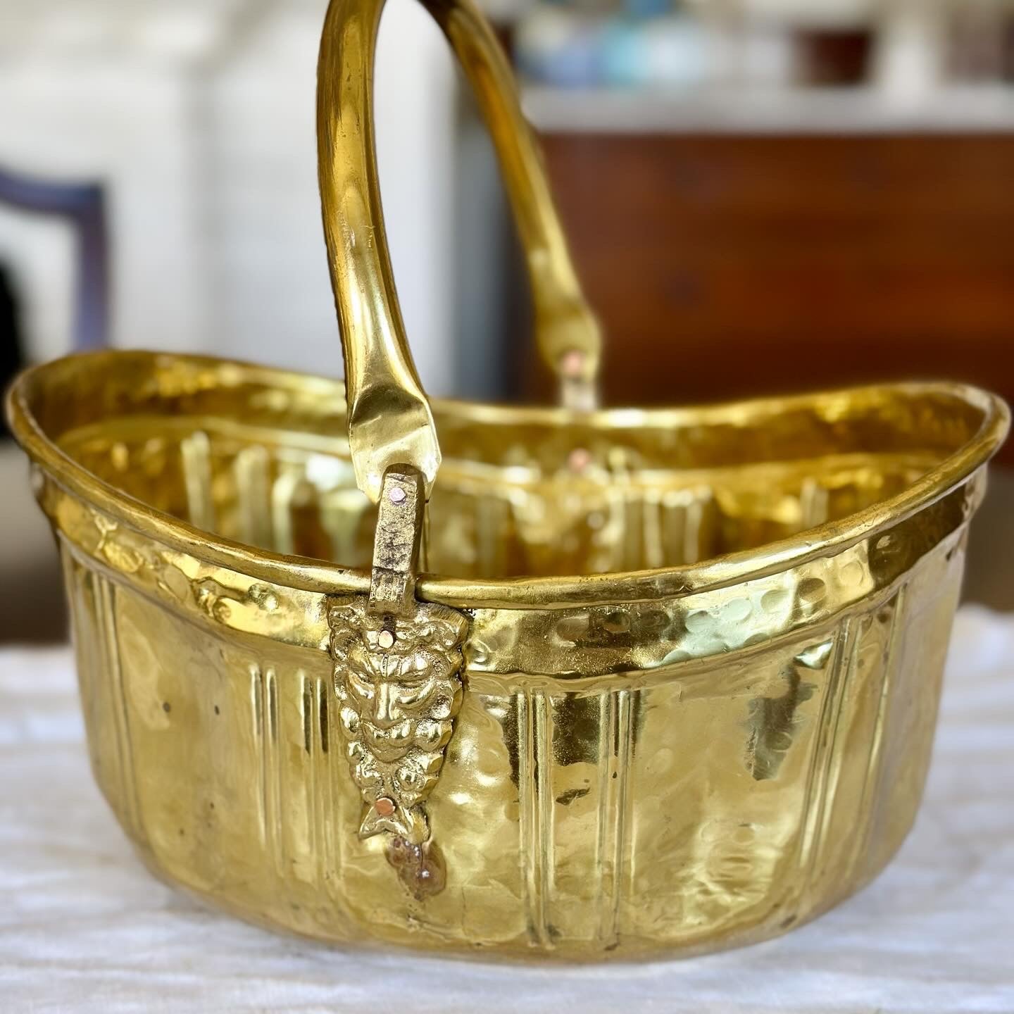 Vintage Brass Basket with Handle & Lion Heads