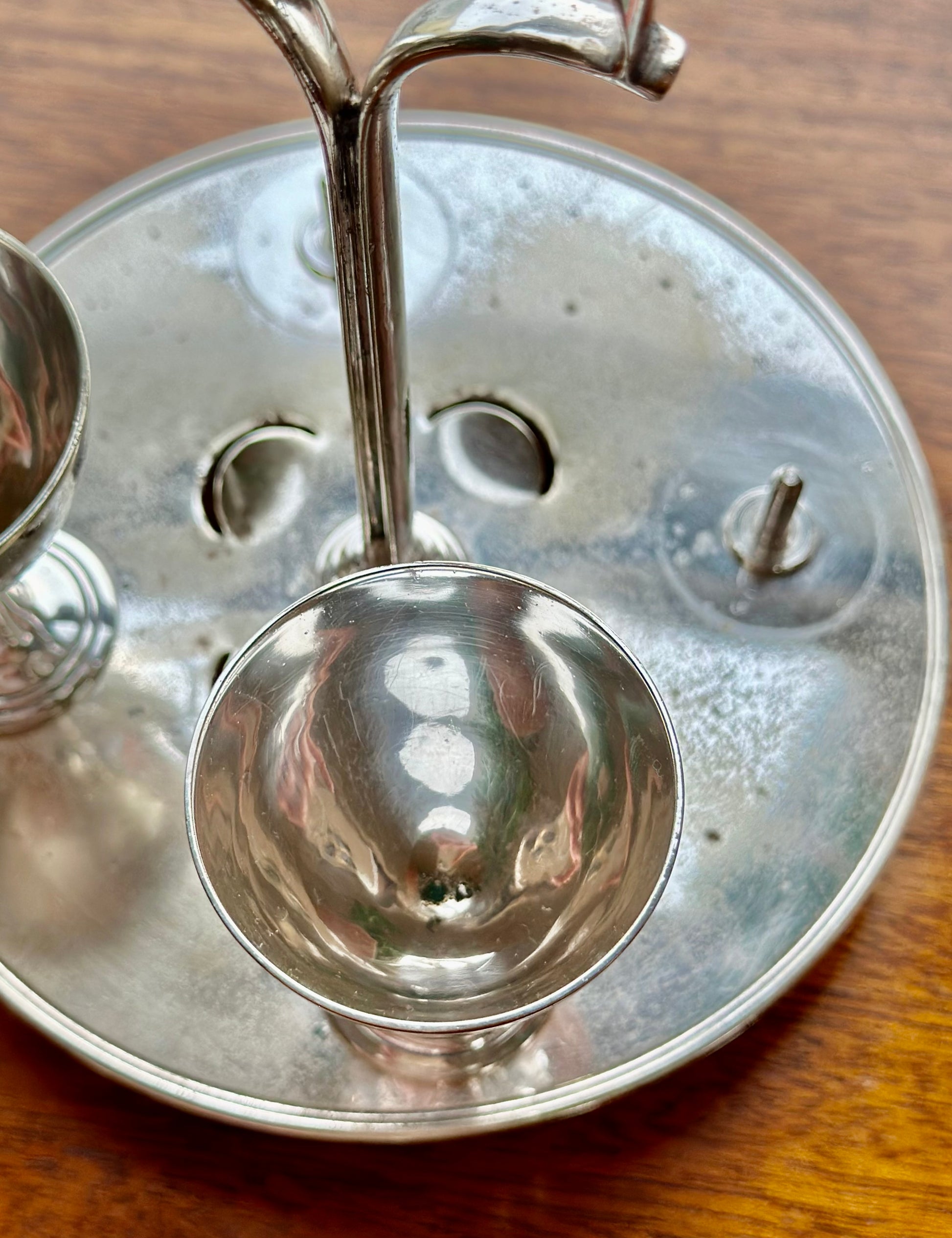 Signs of wear/silverplate fading on stand and egg cups as pictured.