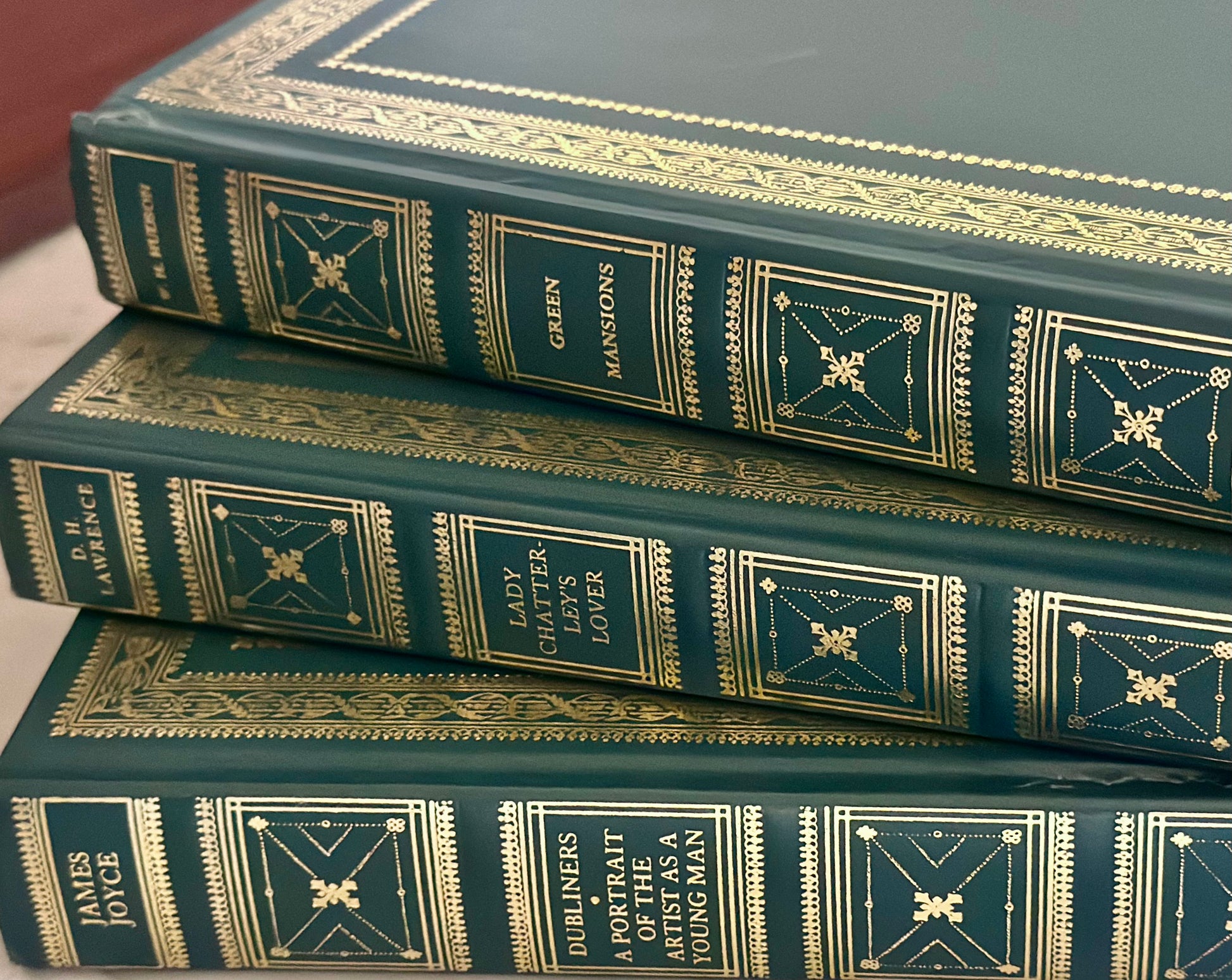 I love these book sets published in the 60s by Viking Press and have several sets in my own house. The bindings and gold accents have held up so well and the designs on the covers are so nice! I love these on shelves or in stacks.