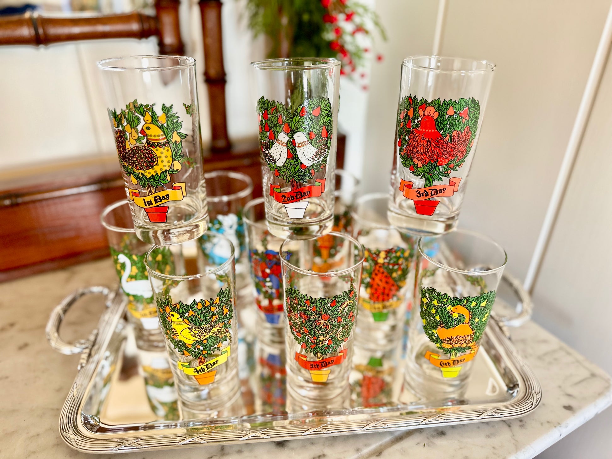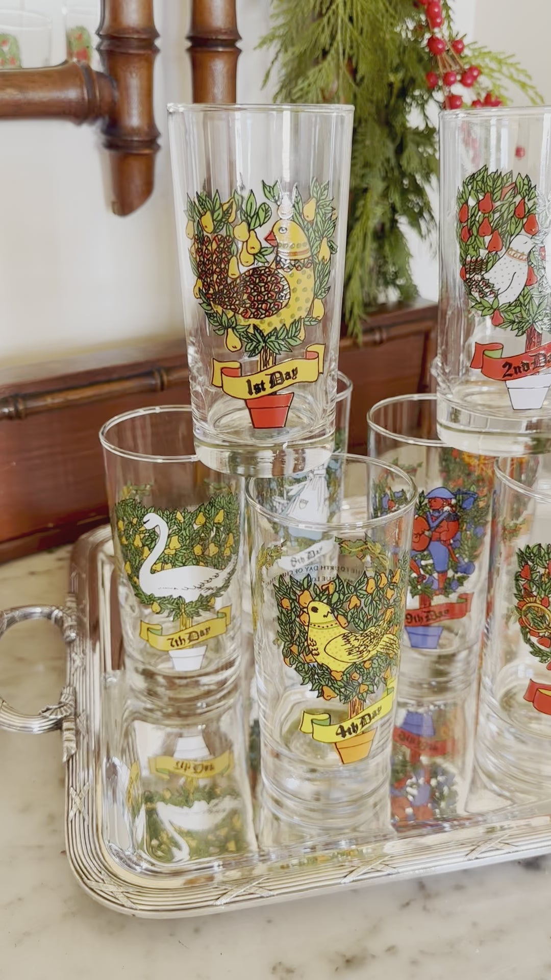 Vintage Indiana Glass Twelve Days of Christmas Tall Glasses