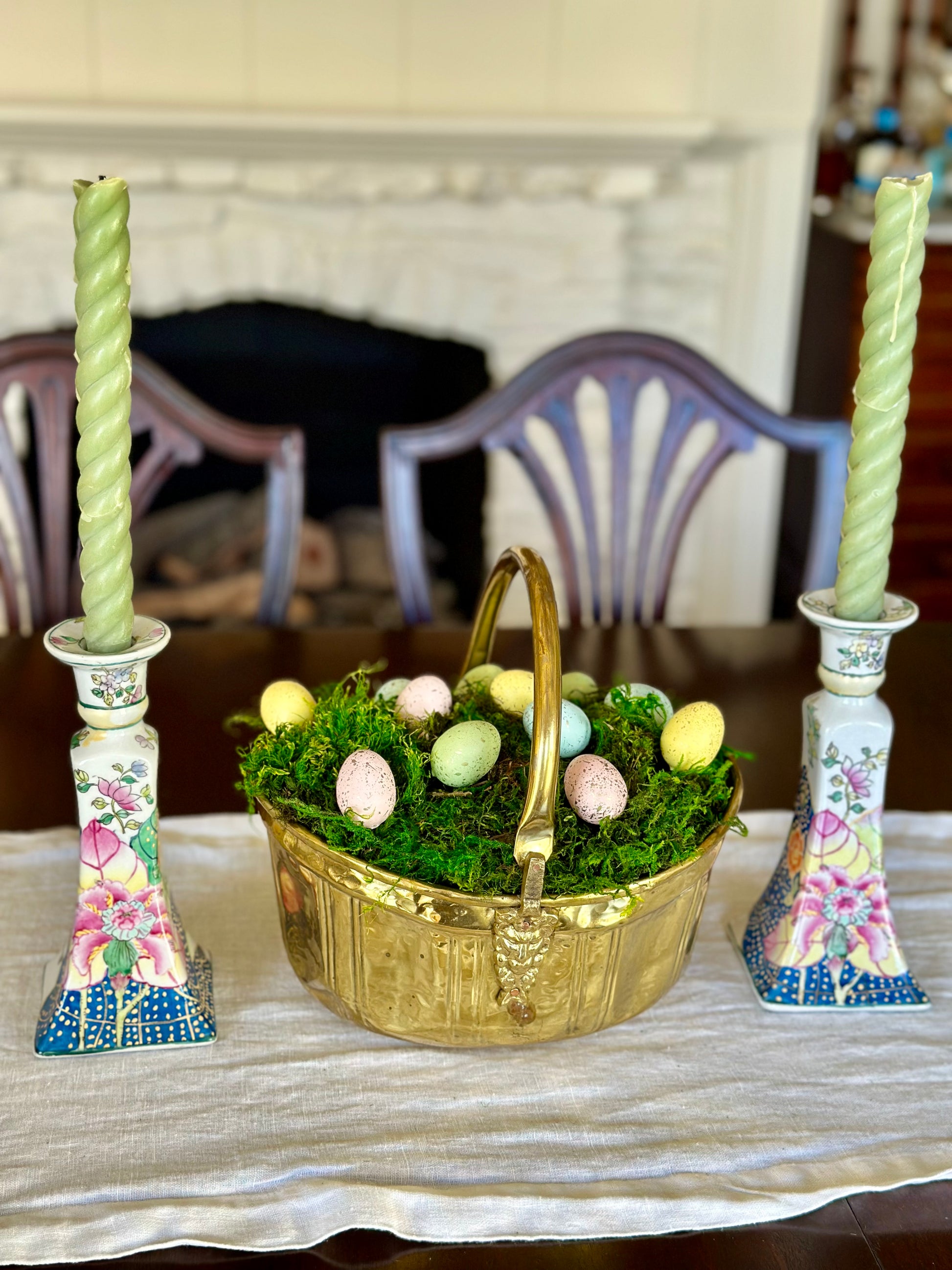 Vintage Tobacco Leaf Porcelain Candlesticks (Set of 2)