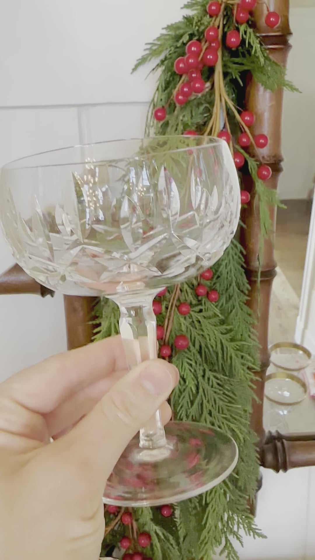 Every single woman in my Southern family adores Waterford crystal, bestowing on only the choicest crystal pieces they come across the comment “I bet it’s Waterford.” So finding Waterford in the wild is especially nostalgic and delightful for me and these coupes are no exception! They have a satisfying weight (i.e. your guests will immediately know when they pick up a glass that they are nice crystal) and the pattern is so simple and elegant, just enough to allow them to catch the light and really shine. I think these would be so very special for holiday cocktails!