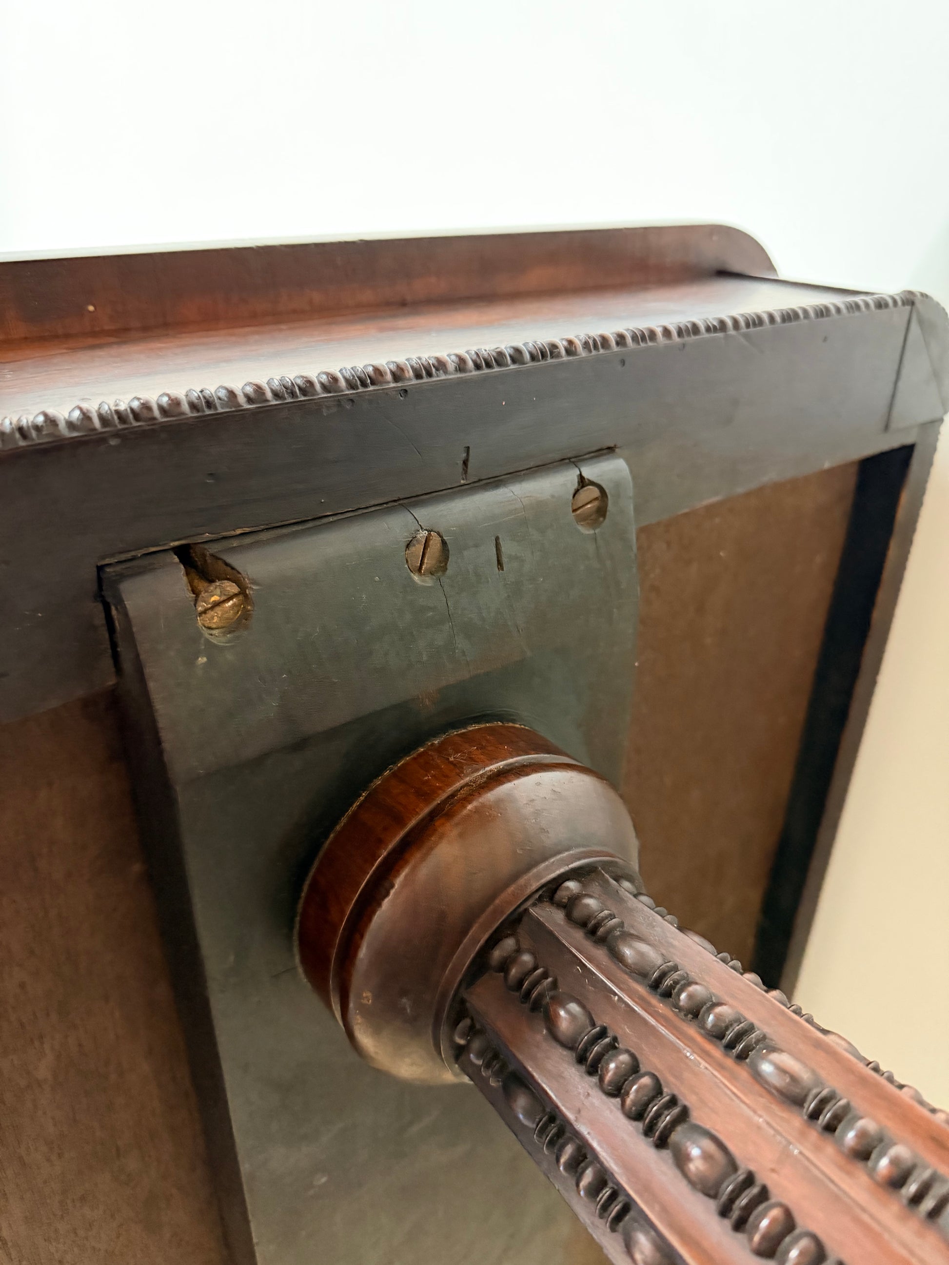 - Spots across back of table, particularly on left side, where varnish is particularly worn